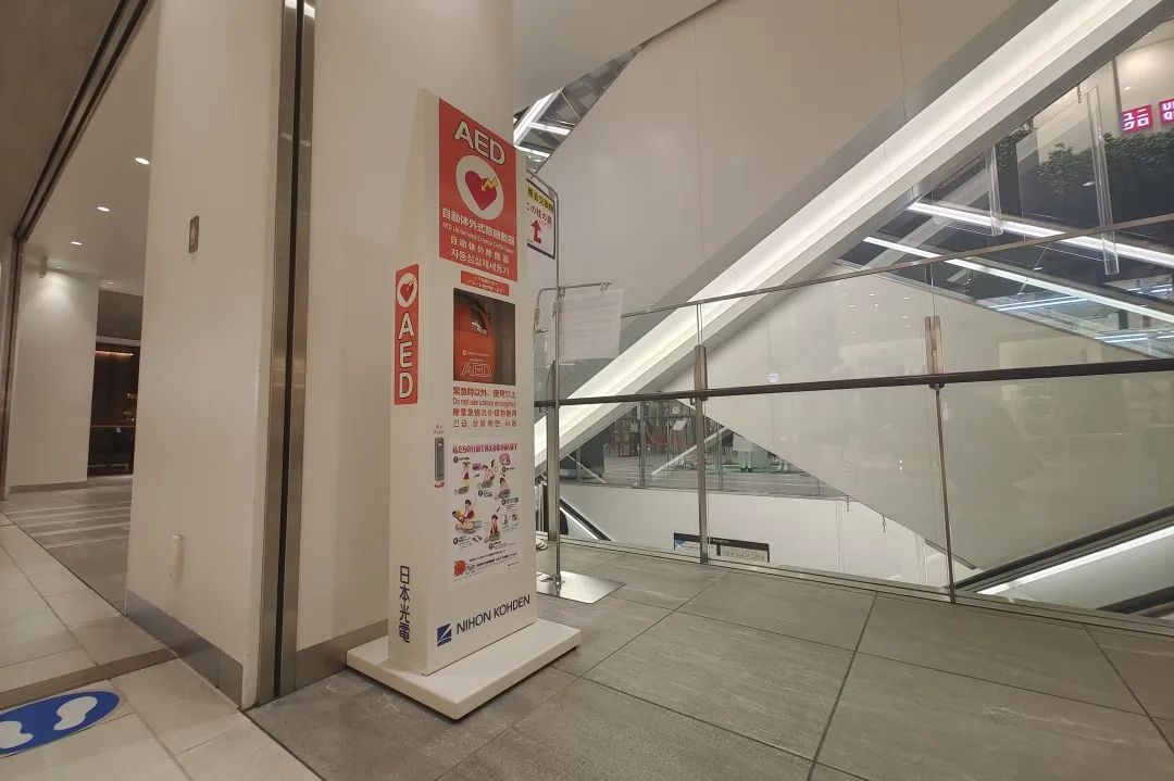 在日本的每個(gè)商場(chǎng),都配備有至少一臺(tái)以上的AED設(shè)備(自動(dòng)體外除顫器)。利用這種設(shè)備,可以對(duì)心臟驟;颊哌M(jìn)行緊急治療,極大地提高患者的存活率。