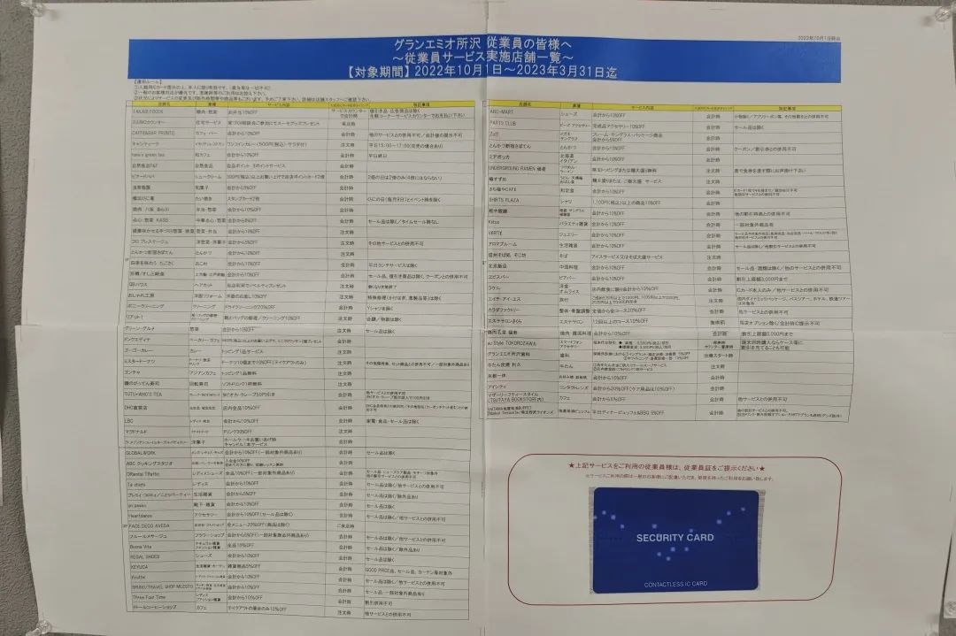 職員們憑借員工卡即可前往對(duì)應(yīng)商鋪享受福利。這一點(diǎn)真的讓我非常震撼,在國(guó)內(nèi)很多商場(chǎng)只關(guān)注會(huì)員折扣的情況下,日本購(gòu)物中心想到的是,營(yíng)業(yè)員其實(shí)也是顧客,要把他們照顧好,讓他們更安心、更自在地在場(chǎng)內(nèi)消費(fèi)。