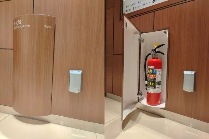 Scramble作為高端百貨,其滅火器儲(chǔ)藏柜的設(shè)計(jì),也融入了整體內(nèi)裝風(fēng)格。需要時(shí)明顯清晰,平時(shí)時(shí)則小巧優(yōu)雅。