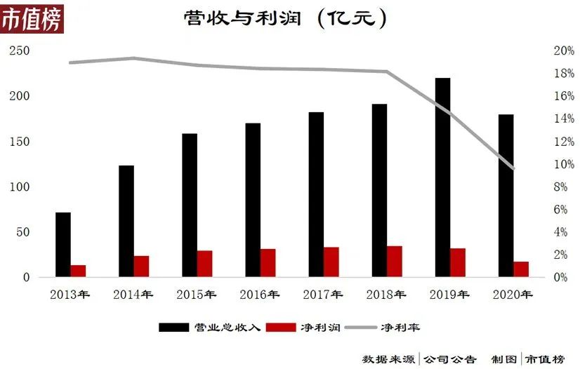2020年年底,海瀾集團(tuán)迎來(lái)了新轉(zhuǎn)折,創(chuàng)始人周建平辭去董事長(zhǎng)位置,正式交棒兒子周立宸;2021年4月,海瀾之家披露了自上市以來(lái)最低的年報(bào)盈利,受疫情沖擊,公司在2020年實(shí)現(xiàn)營(yíng)業(yè)收入179.6億元,較2019年減少了18.3%,歸母凈利潤(rùn)才17.8億元,同比大跌44.4%。