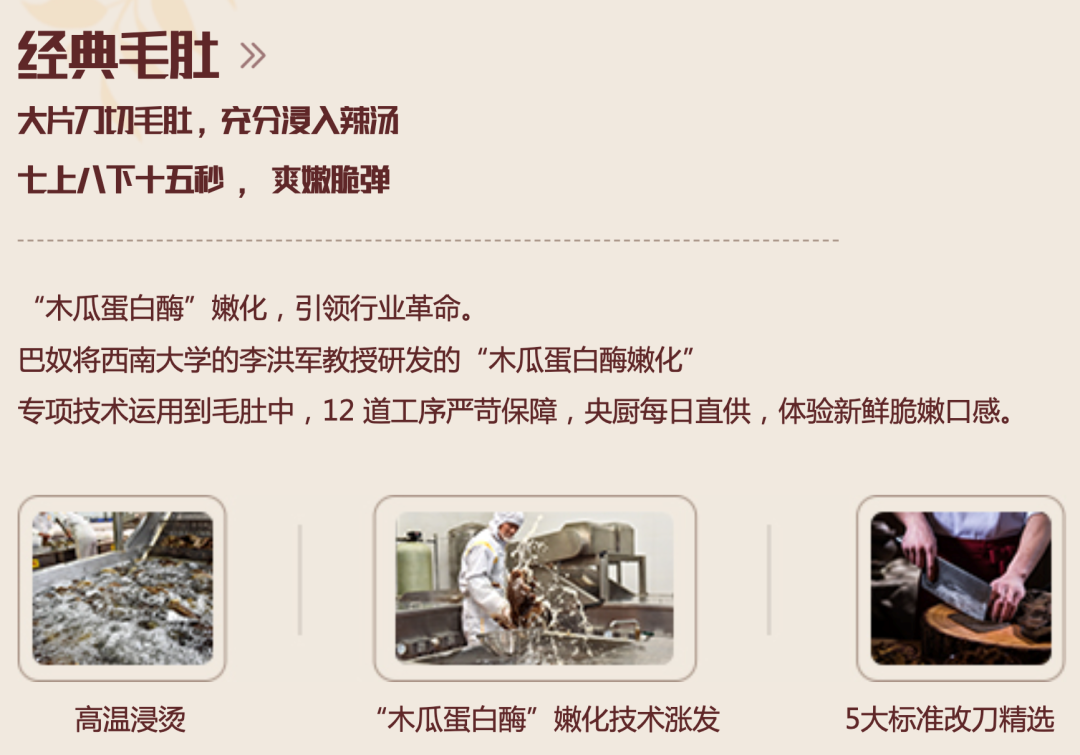 當初,巴奴火鍋的毛肚確實因“產品主義”一炮走紅,通過獨特的“木瓜蛋白酶嫩化”技術,使得他家的毛肚在口感上“出圈”,成了品牌的金字招牌。