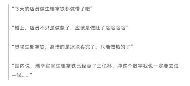 “國內(nèi)說,瑞幸官宣生椰拿鐵已經(jīng)賣了三億杯,沖這個數(shù)字我也一定要去試一試……”