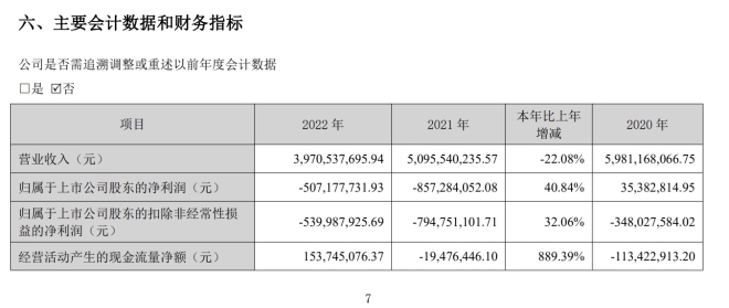報告期內,人人樂實現(xiàn)營收39.71億元,同比下降22.08%;歸屬于上市公司股東的凈虧損5.72億元,同比收窄40.84%;經營活動產生的現(xiàn)金流量凈額1.54億元,同比增長889.39%;歸屬于上市公司股東的凈資產1.11億元,同比下降82.09%。