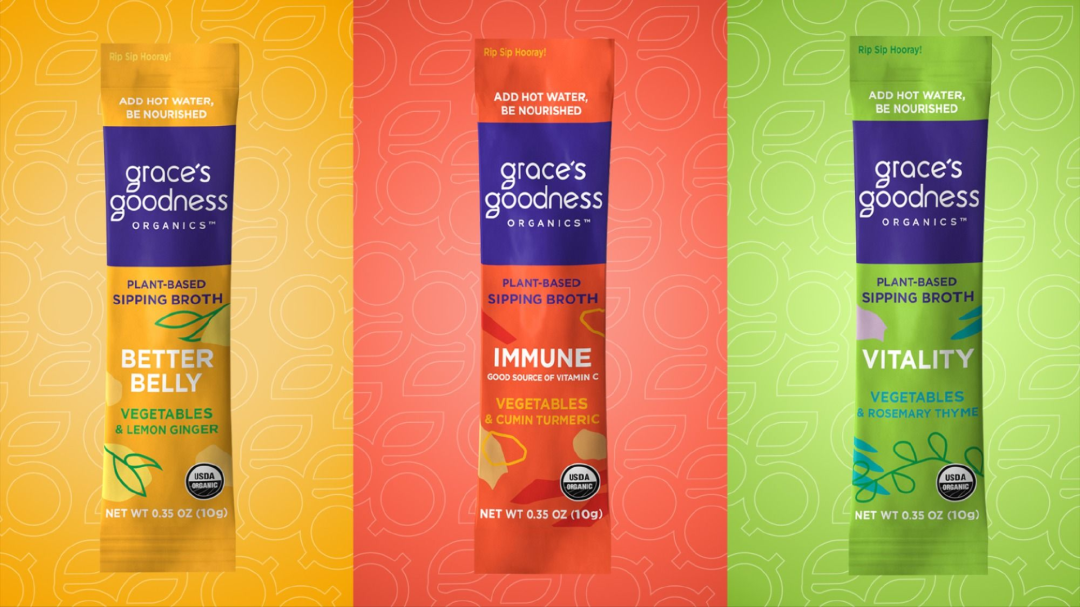除了蔬菜汁,國外還出現(xiàn)一些比較“有意思”的產(chǎn)品,比如Grace's Goodness的即飲蔬菜湯,這是一款純植物基即飲湯,含有蔬菜、保健藥草、營養(yǎng)酵母和 MCT(中鏈甘油三酯)等簡單有機成分,條狀設(shè)計方便攜帶,只需用熱水沖泡即可飲用,隨時補充能量與活力。而且該產(chǎn)品也可與大多數(shù)食物混合食用,例如與果汁混合,或添加到沙拉、主菜等中。