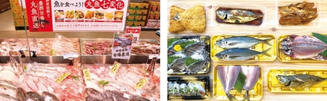 在鮮魚區(qū),他們展示了“全國市場(chǎng)直送的新鮮魚”等商品,提高鮮度感,并通過加工7種不同的烹飪用途,讓顧客知道如何簡單地烹飪整條魚。這個(gè)區(qū)域旨在向附近的年輕家庭提供他們平常不吃的整條新鮮魚。