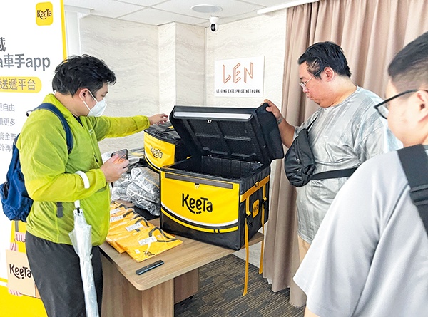 介紹會(huì)上,美團(tuán)演示了外賣(mài)員應(yīng)用“KeeTa Rider”使用流程,并展示了印有“KeeTa”標(biāo)識(shí)的外賣(mài)箱,以及一系列印有KeeTa的海報(bào)等物料。其中,外賣(mài)員應(yīng)用KeeTa Rider正在內(nèi)部測(cè)試中。似乎意味著,美團(tuán)美團(tuán)香港外賣(mài)品牌將命名為“KeeTa”。