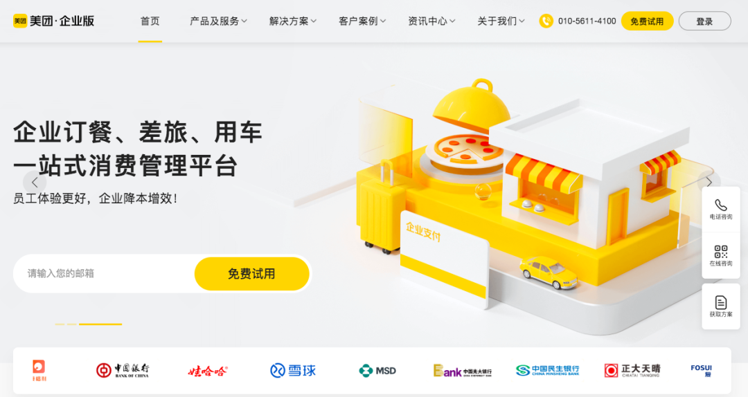 如今,美團(tuán)試圖在企業(yè)消費(fèi)市場(chǎng)復(fù)制這套邏輯。以企業(yè)用餐為口子,實(shí)則涵蓋工作餐、商務(wù)宴請(qǐng)、企業(yè)差旅、企業(yè)用車等多元場(chǎng)景服務(wù)。