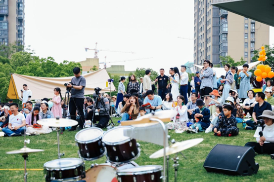 此外,杭州大悅城通過與得到高研院杭州校區(qū)聯(lián)動(dòng),充分利用建筑及景觀優(yōu)勢(shì),以藝術(shù)中心戶外大草坪為開放式舞臺(tái),打造首屆大草坪音樂節(jié),超30+學(xué)員獨(dú)立樂隊(duì)參與表演,成為嗨新節(jié)期間最靚街景。