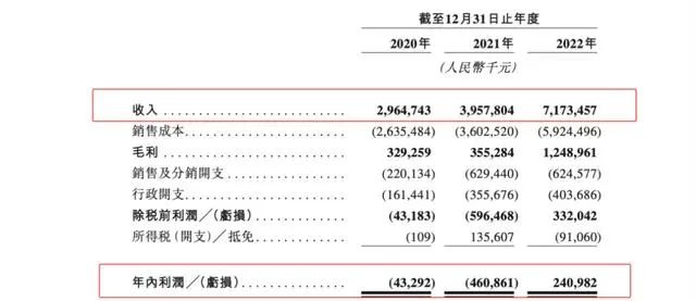 鍋圈的一路發(fā)展,也離不開資本對賽道的看好。在資本入局和門店擴(kuò)張下,鍋圈食匯的營收亦隨之上漲。2020年-2022年,收入分別為29.18億元、38.80億元、70.59億元。同時,毛利率大幅提升,分別為11.1%、9.0%及17.4%,2022年較上年幾乎翻倍。但持續(xù)虧損,凈利潤分別為-4329.2萬元、-4.61億元、2.41億元。