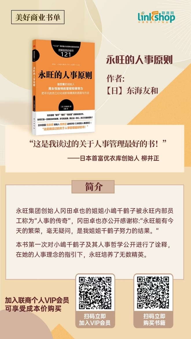 目前,《永旺的人事原則》已經(jīng)在聯(lián)商書城正式上架,有需求者可以前往購(gòu)買!