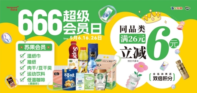 同時,為更好的與年輕客群交朋友,“蘇果好的”5月還將繼續(xù)開展“不焦綠便利店”主題營銷,吃掉焦慮,回收壞情緒。針對五一宅家慢生活人群,組織休閑零食、啤酒、果汁、茶飲等開展2件優(yōu)惠價。針對高考群體,聚焦乳品、能量飲料等開展會員專享價;并持續(xù)打造#123寵粉節(jié)、#666超級會員日、#超級吃貨日等會員IP活動,增強(qiáng)權(quán)益價值感:會員1-3日到店即可享3倍積分;6日、16日、26日指定品類滿26元立減6元、每周四自營鮮食85折(短保面包、冷藏甜品、便當(dāng)、鹵菜)。