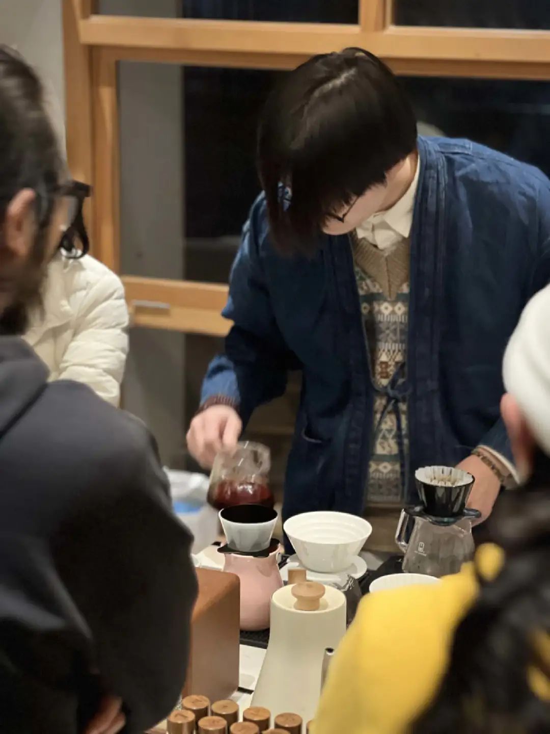 受訪者供圖:“蟬咖啡”店里顧客在體驗手沖咖啡