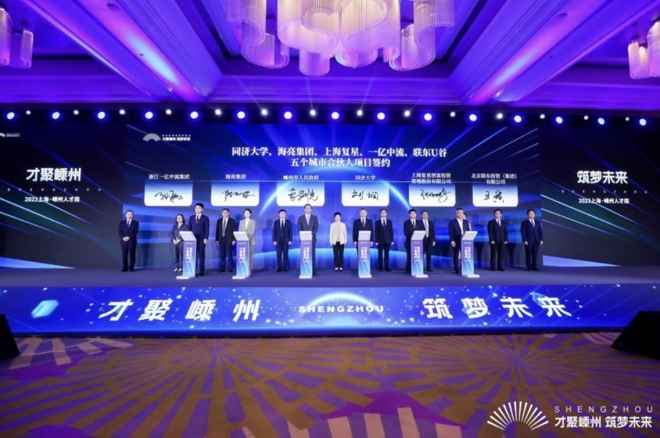 4月22日,“才聚嵊州 筑夢未來”2023上!め又萑瞬胖苤髦即髸谏虾⒛。海亮集團作為五大城市合伙人之一,與嵊州市進行城市合伙人項目簽約,正式達成戰(zhàn)略合作。海亮集團黨委書記、董事長王黎紅受邀出席會議并見證項目簽約。