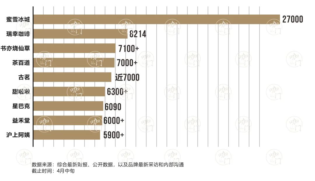 我盤點(diǎn)了行業(yè)門店數(shù)量在5000家以上的飲品品牌,大致有9個(gè),除卻瑞幸咖啡和星巴克中國(咖啡品類),再去掉已經(jīng)過萬的蜜雪冰城,還剩下6個(gè)茶飲品牌,門店數(shù)在5000~8000之間。