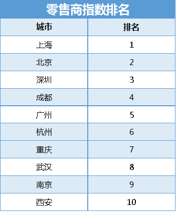 從第一太平戴維斯發(fā)布的數(shù)據(jù)來看,此類城市商業(yè)指數(shù)較高,都是消費大城,重奢必爭之地,其中成都超越廣州位列第四,杭州、武漢、西安等均位列前十。