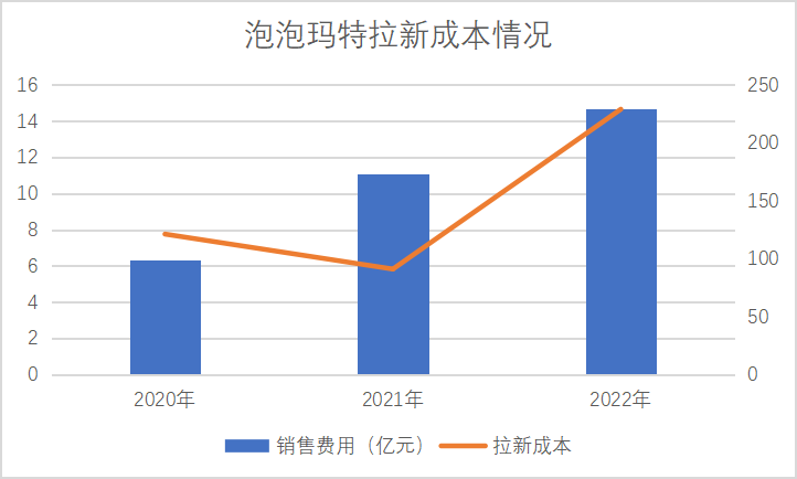 營銷效率方面,泡泡瑪特一直在以加大營銷投入的方式來獲取客戶,但從數(shù)據(jù)上我們可以看到,營銷成本持續(xù)加大,但單用戶獲取成本卻在逐步加大(營銷費(fèi)用/新增會員數(shù)量),再次驗(yàn)證了前邊我們提出的其用戶增長逐步觸及天花板,進(jìn)入增長瓶頸。
