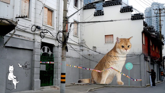 宋代文學(xué)著作《麟書》曾記載“安得朏朏之與游,而釋我之憂也哉”。語出《山海經(jīng)》的“朏朏”被史學(xué)家鑒定為中國歷史上最早被人類馴化的寵物——貓,而這種神奇的生靈能夠幫助人類排解憂愁!皵]貓”帶來的治愈從古至今未曾改變。本次外灘藝術(shù)季與小紅書官方合作,聯(lián)合發(fā)起線上征集話題#送我家貓咪上墻#,面向上海地區(qū)全市召集貓咪形象,并由藝術(shù)大使TANGO精心創(chuàng)作后,繪制在方浜中路老城廂墻面上,打造藝術(shù)季超人氣打卡點“外灘貓街”,讓上海老城廂煥發(fā)新鮮藝術(shù)活力;硗鉃┴埥值姆戒褐新纷鳛锽FC與豫園之間的紐帶,串聯(lián)起本次外灘藝術(shù)季大豫園片區(qū)的一站式藝游旅程。