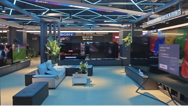 在京東電器觀前店的彩電區(qū)域,游戲電視體驗區(qū)、畫壁電視體驗區(qū)、激光電視體驗區(qū)、8K電視體驗區(qū)、MiniLed體驗區(qū)等多種場景互動的影音體驗專區(qū),為消費者展示出高清大屏帶來的視覺震撼。