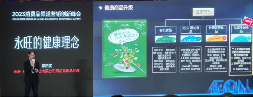 4月18日,永旺(中國)投資有限公司商品總部總經(jīng)理深田實(shí)在CCFA新消費(fèi)論壇——2023消費(fèi)品渠道營銷創(chuàng)新峰會(huì)上分享了永旺的健康理念,以消費(fèi)者的健康商品購物體驗(yàn)為核心,從健康商品供應(yīng)、商品品質(zhì)保障、品牌健康印象三方面入手,打造“健康超市”。