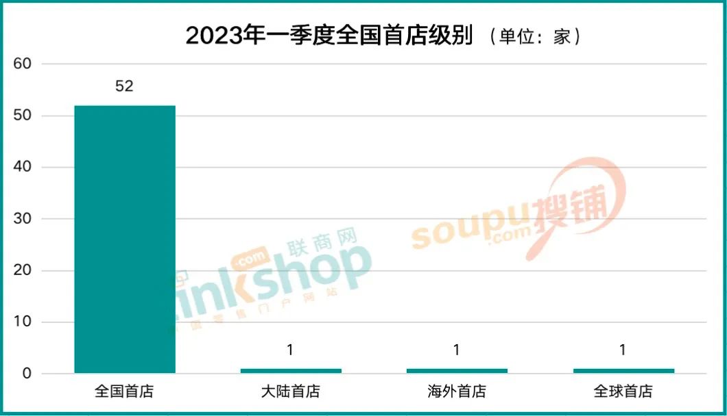 根據(jù)聯(lián)商網(wǎng)零售研究中心統(tǒng)計(jì),一季度55家“全國首店”中,數(shù)量最多的當(dāng)屬全國首店,共有52家,占比95%,全球首店、海外首店、大陸首店各1家。