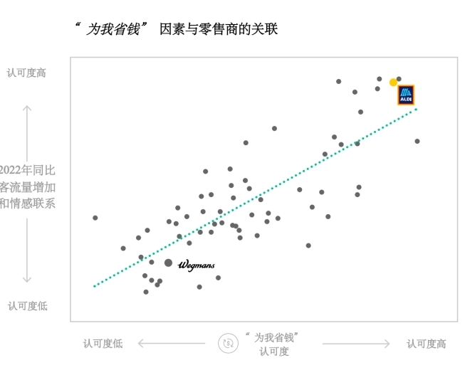據(jù)dunnhumby《2022年美國超市零售商研究報告》,就“為我省錢”指標而言,ALDI在美國市場的認可度遙遙領(lǐng)先。圖源:dunnhumby