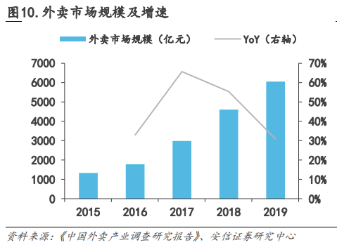 例如外賣(mài),在2019年外賣(mài)市場(chǎng)規(guī)模達(dá)到6035億,同比增長(zhǎng)30.8%,滲透率達(dá)到15.9%。
