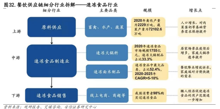 就是將上游的禽畜、水產(chǎn)、蔬菜類(lèi)原料,送至中游的速凍食品制造企業(yè)家加工。