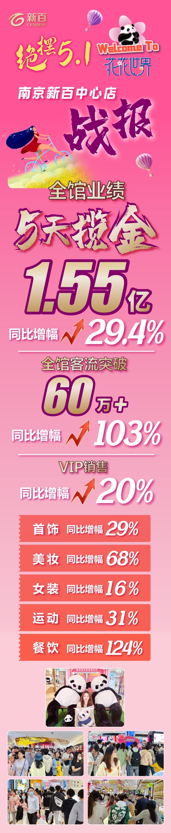 今年南京作為網(wǎng)紅旅游城市新秀,五一小長假期間交出亮眼的成績。南京新百中心店特別推出五一大促活動,業(yè)績躍上新臺階。