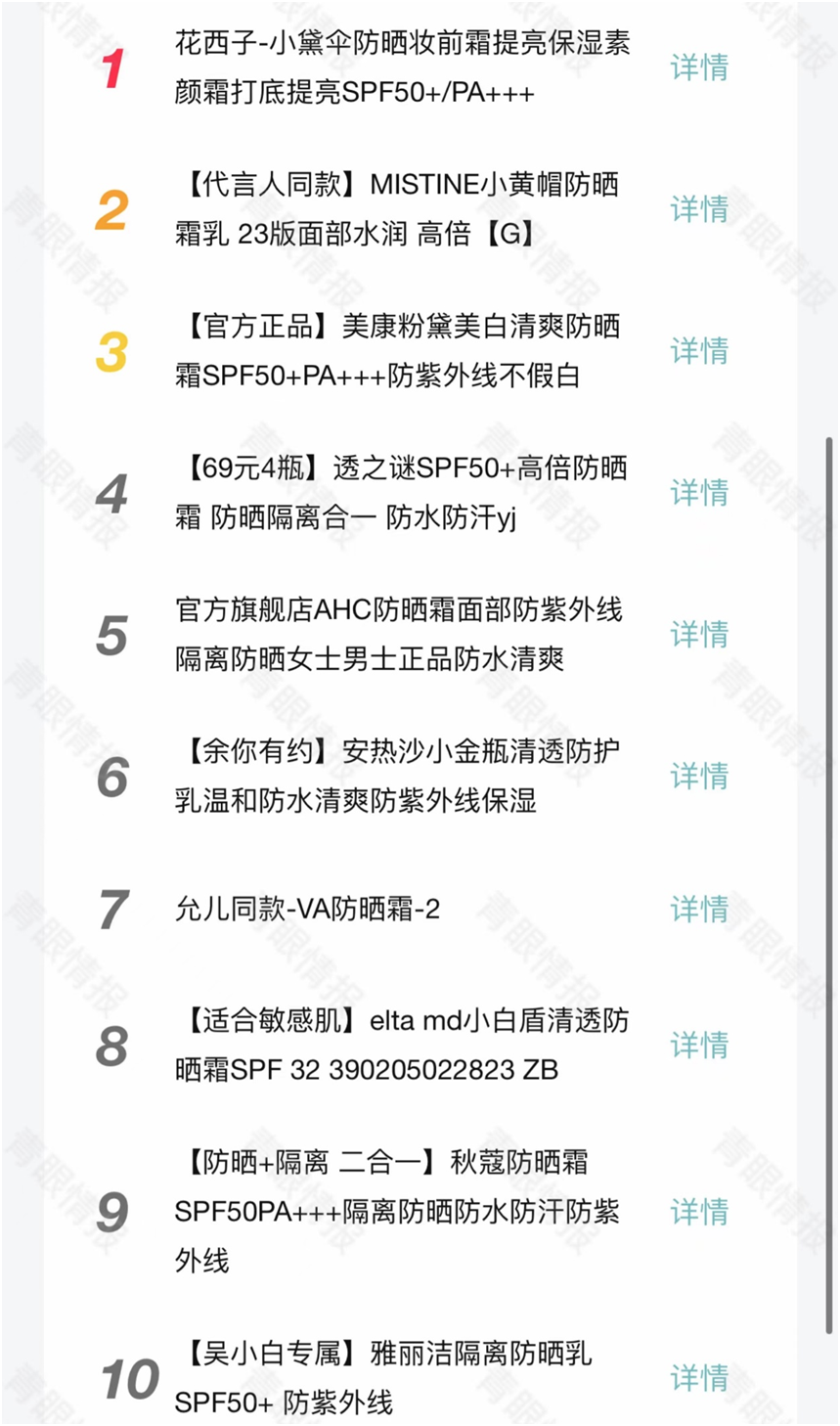 青眼情報數(shù)據(jù)顯示,2023年3月,抖音平臺排名前10的防曬產品中有6款來自國產品牌,包括花西子、美康粉黛、透之謎、VA和秋蔻、雅麗潔,其中4款產品的單價都在40元以下。