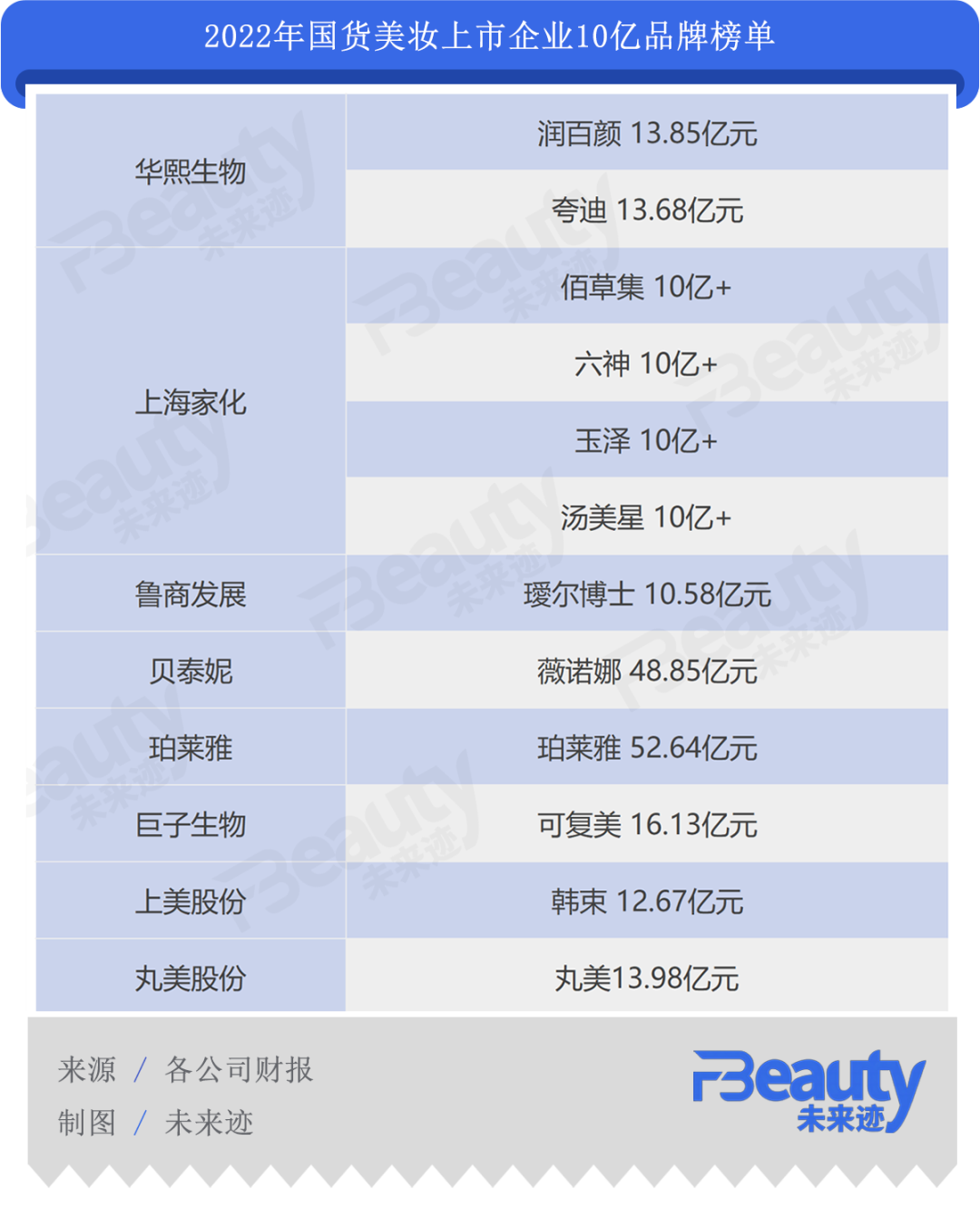 以10億元為門檻,《FBeauty未來(lái)跡》發(fā)現(xiàn)已上市企業(yè)中,已有13個(gè)年?duì)I收超過(guò)10億元的國(guó)貨品牌。在這其中,出現(xiàn)了年?duì)I收52.64億的超級(jí)品牌珀萊雅和準(zhǔn)50 億品牌薇諾娜,它們已經(jīng)能夠在中國(guó)市場(chǎng)與國(guó)際品牌正面抗衡,且不斷突破國(guó)貨品牌的天花板,這是一次國(guó)貨品牌里程碑式的躍進(jìn)。