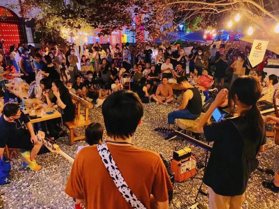 北四跳(跳海Village)院子里的樂隊(duì)演出,沒有位置就席地而坐
