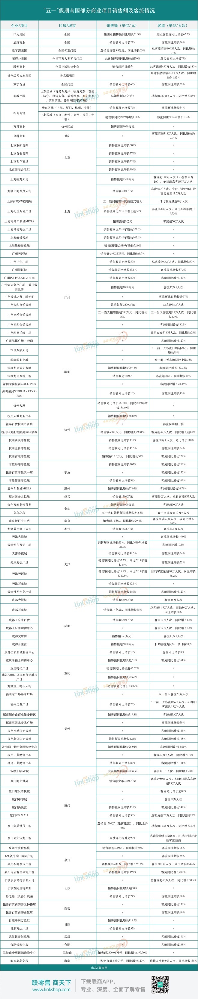 與此同時,各地商貿(mào)企業(yè)也積極通過營銷手段提振消費,各地商圈銷售、客流均呈現(xiàn)不同程度的增長。對此,《聯(lián)商網(wǎng)》整理了全國部分商業(yè)項目今年五一假期的客流和銷售情況。