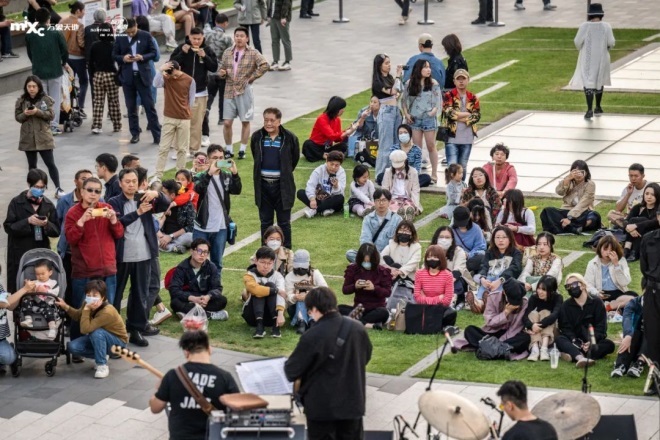 上海前灘太古里的營銷活動自五一小長假前一天便正式開始。4月28日起至6月,前灘太古里開啟“Let’s Bond Well棒的好生活”系列主題活動,融合潮牌首發(fā)、奢尚名品、味蕾食釀、文化藝術、音樂潮玩、品質生活等多元主題。4月28日,以“BOND音樂季”正式拉開“Let’s Bond Well棒的好生活”帷幕,引入音樂IP“擲地有聲”,開幕秀當天及黃金周期間,共有17場精彩表演上演。