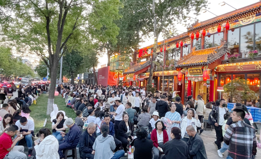 ◎2023年“五一”假期,胡大飯館總店,顧客排隊(duì)等位