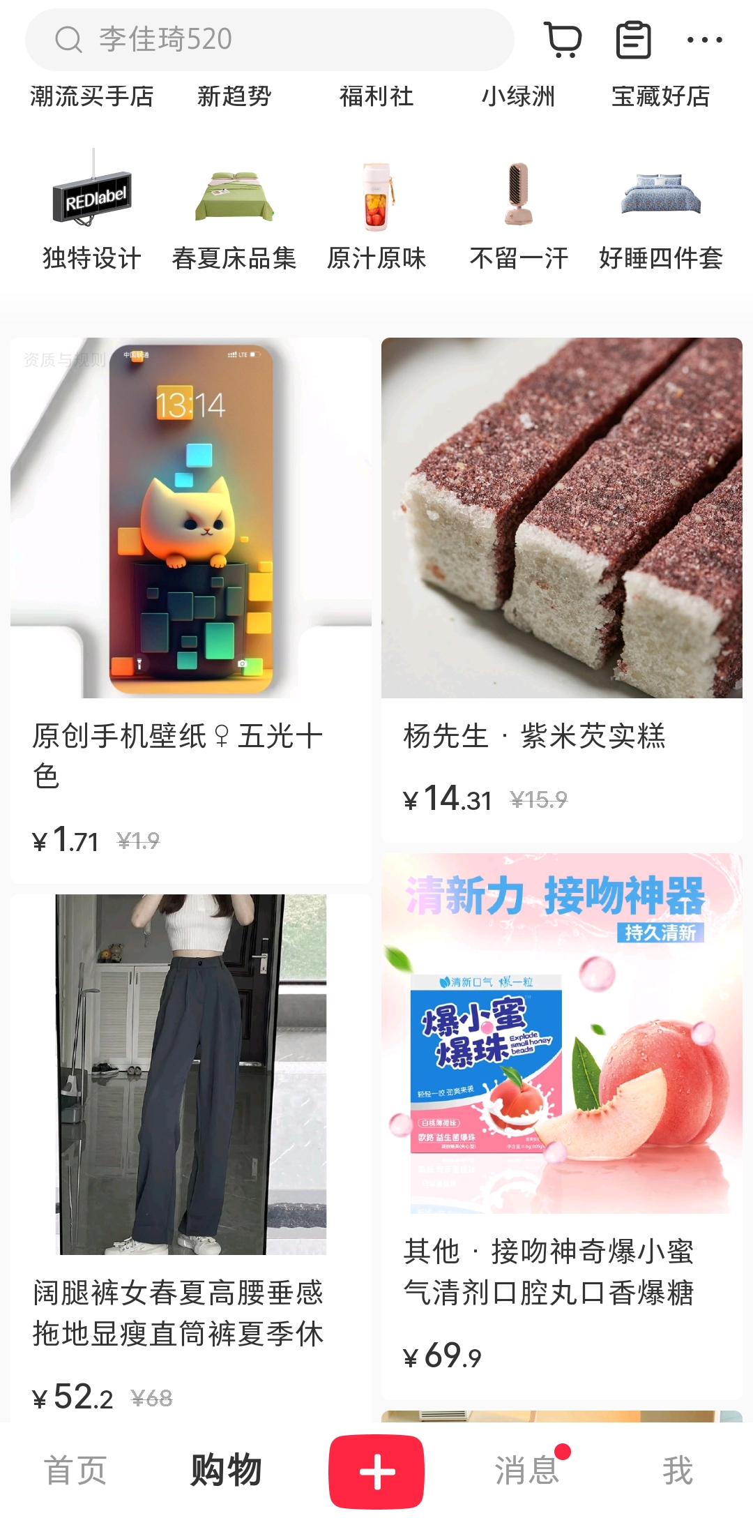 點(diǎn)進(jìn)小紅書(shū)的“購(gòu)物”頻道可以看到,其中的商品大多為手機(jī)殼、零食、使用、低價(jià)服裝等品類,單價(jià)基本不超過(guò)100元。雖然根據(jù)每個(gè)人的推薦算法會(huì)有例外,但從整體看來(lái)以小商品為主。