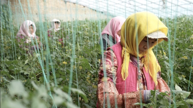 今年58歲的趙愛(ài)英家里種了十幾畝地,農(nóng)閑時(shí)會(huì)到附近的小番茄基地從事種植、分揀、打包等工作。按小時(shí)計(jì)算工資,一小時(shí)15到18元,一天一般需要工作7-8個(gè)小時(shí),忙的時(shí)候要工作十幾個(gè)小時(shí)!耙粋(gè)月可以掙3000多塊錢!