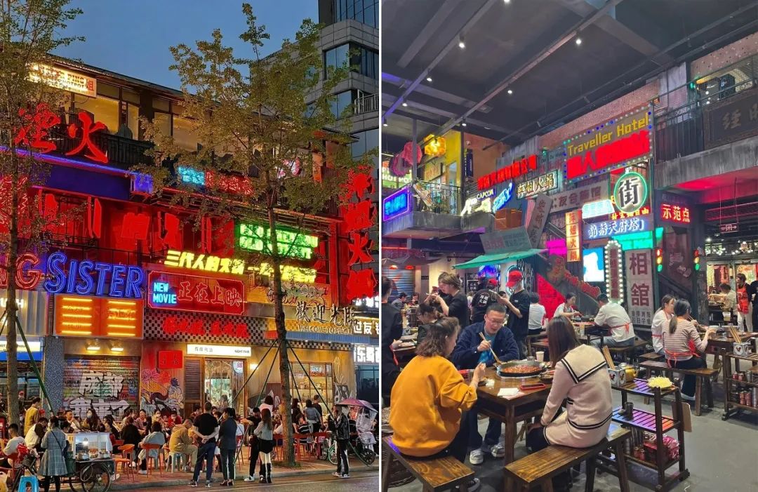 比如全國各地的網紅美食街都有一個“我在XX很想你”的路標,一些餐廳也把牌子搬到門口,努力讓俊男靚女們留下“朋友圈的記憶”;