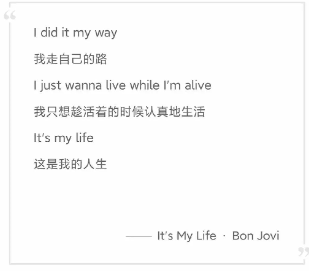 圖/《It's My Life》歌詞分享,來源/網(wǎng)易云音樂 燃次元截圖