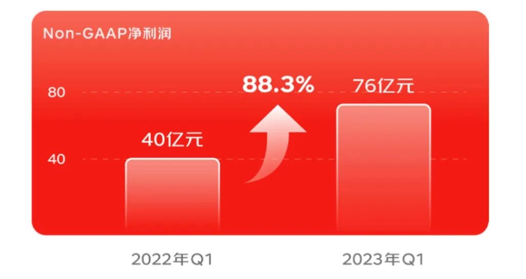 5月11號,京東集團發(fā)布了2023年一季度業(yè)績報告。Q1,其總收入為2430億元,同比增加33億元;非美國通用會計準則下(Non-GAAP)凈利潤為76億元,同比增長88.3%,遠遠超越市場預期。