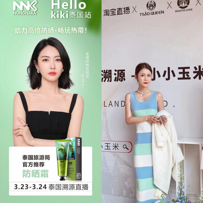 前有抖音的多余和毛毛姐去了新加坡、董先生去了法國(guó)帶貨巴黎歐萊雅,后有淘寶主播烈兒寶貝、香菇來(lái)了、陳潔KIKI和小小玉米CORN紛紛去了泰國(guó)帶貨美妝……