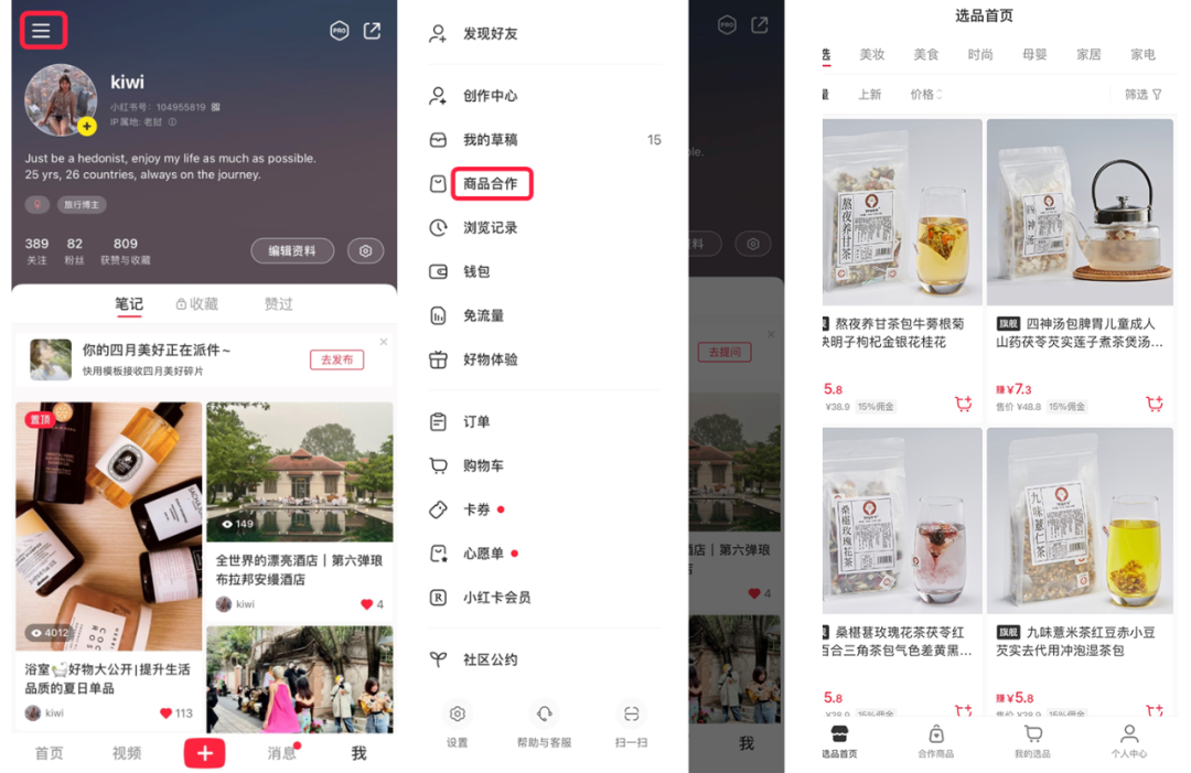億邦動(dòng)力多方了解到,目前小紅書達(dá)人端后臺(tái)均可以看到選貨中心,但帶貨筆記功能尚未面向全部商家開放。