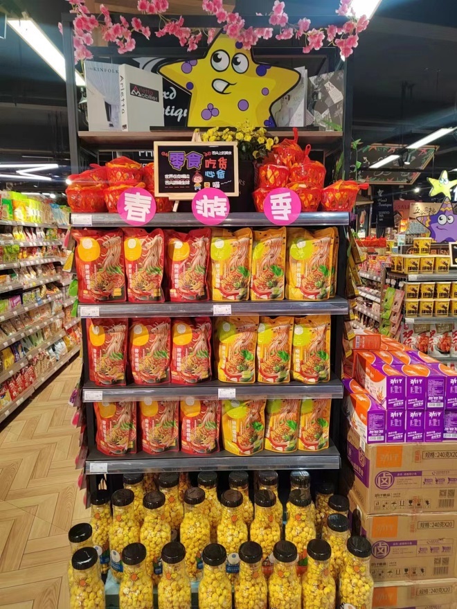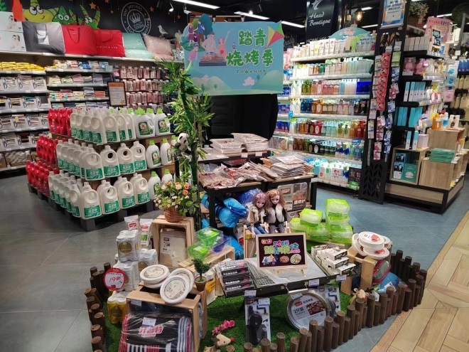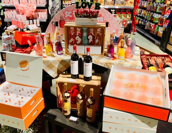 商品上品類齊全,部分類別陳列以中島形式,如紅酒、生鮮加工、烘焙特色,食品打造網(wǎng)紅的渠道營銷。領(lǐng)先于同業(yè)市場商品的上新、汰換速度。