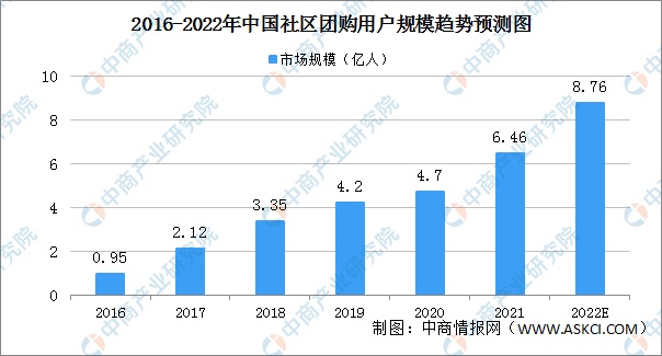 數(shù)據(jù)顯示,2022年我國社區(qū)團購市場規(guī)模超過2000億元,而在服務(wù)規(guī)模上,2021年社區(qū)團購用戶規(guī)模為6.46億人,預計2022年用戶規(guī)模將增至8.76億人。