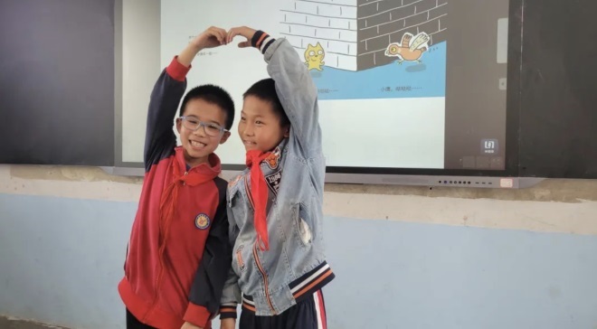 捐贈儀式結(jié)束后,貴州合力超市集團志愿者、福建省擔當者行動教育基金會老師深入班級進行閱讀指導,互動交流。貴州合力超市公益負責人謝紅玲還為孩子們上了一堂生動的閱讀課——《跑跑鎮(zhèn)》的故事。閱讀互動過程中,同學們發(fā)出陣陣爆笑聲,現(xiàn)場氣氛熱烈而歡快,即使故事講完了,孩子們還是意猶未盡。
