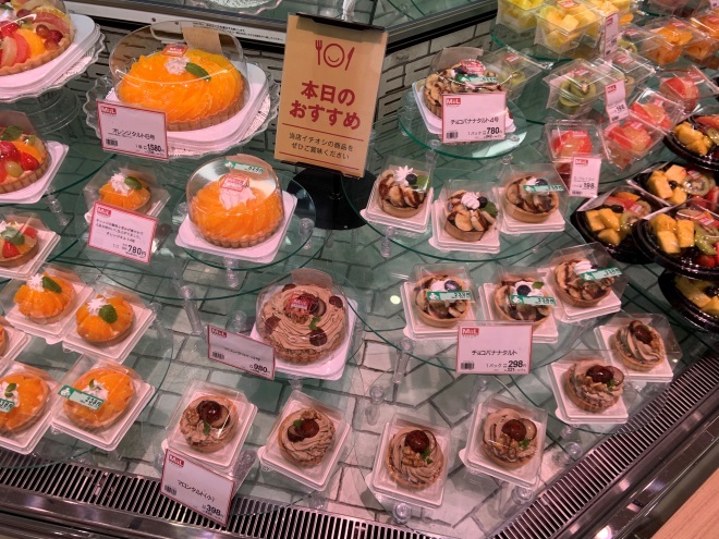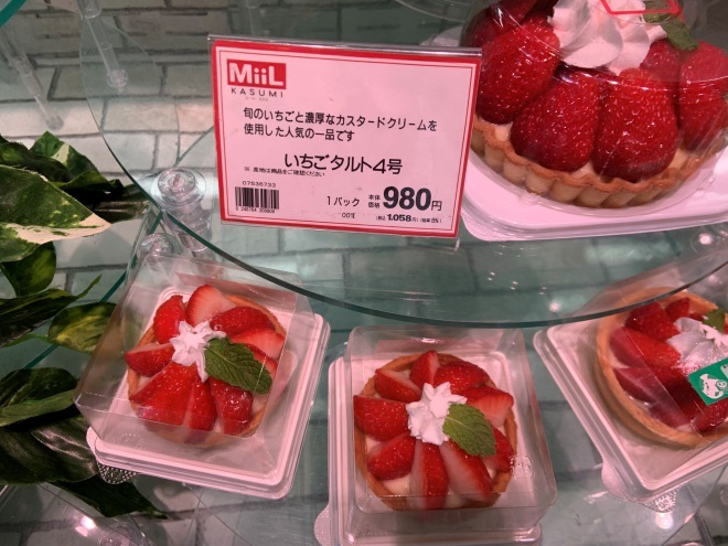 日本食品超市水果賣場(chǎng)的關(guān)聯(lián)陳列,草莓+自制水果甜品(草莓蛋撻等)