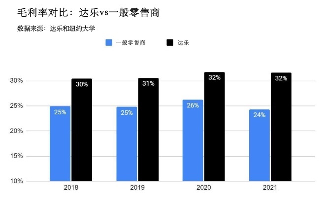 達(dá)樂大部分門店都是租賃得來,此舉有利于有效降低成本。其中不乏一些開發(fā)商專門為連鎖店而建造的門店,開發(fā)商自行承擔(dān)了建設(shè)成本。同時(shí),相比沃爾瑪17.8萬平方英尺的平均店面面積,達(dá)樂店面極小,平均面積為7400平方英尺,且裝潢也極為簡(jiǎn)單:幾個(gè)金屬貨架、條形照明燈與低成本標(biāo)牌足矣。正因?yàn)槿绱耍_(dá)樂安裝成本較業(yè)界均值要低得多。