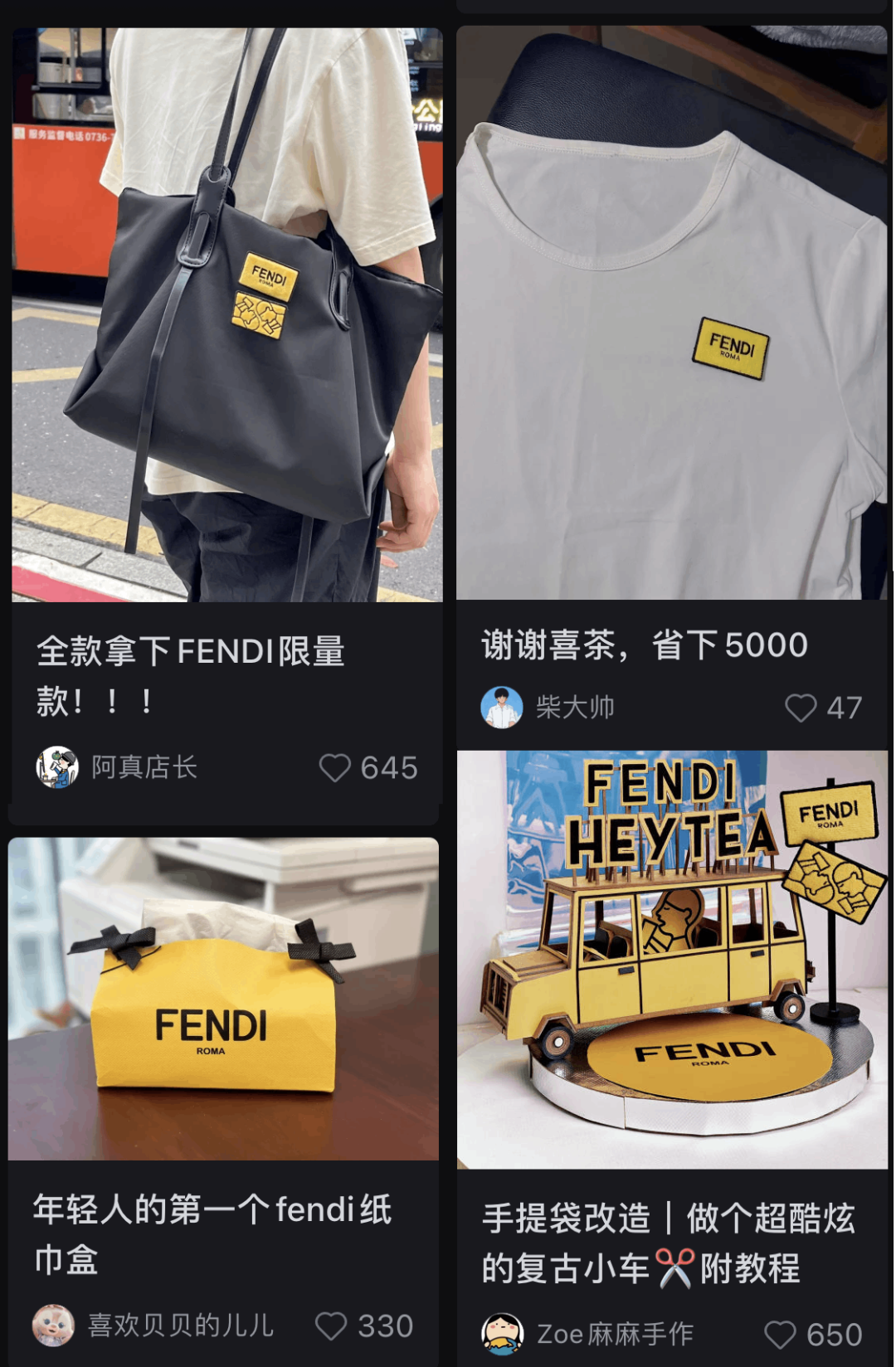 比如:“這是我離FENDI最近的一次”“全款拿下,人生第一個FENDI!”“這是我唯一買得起的FENDI單品”“我和許光漢的唯一聯系是我買得起19塊的喜茶XFENDI聯名”……