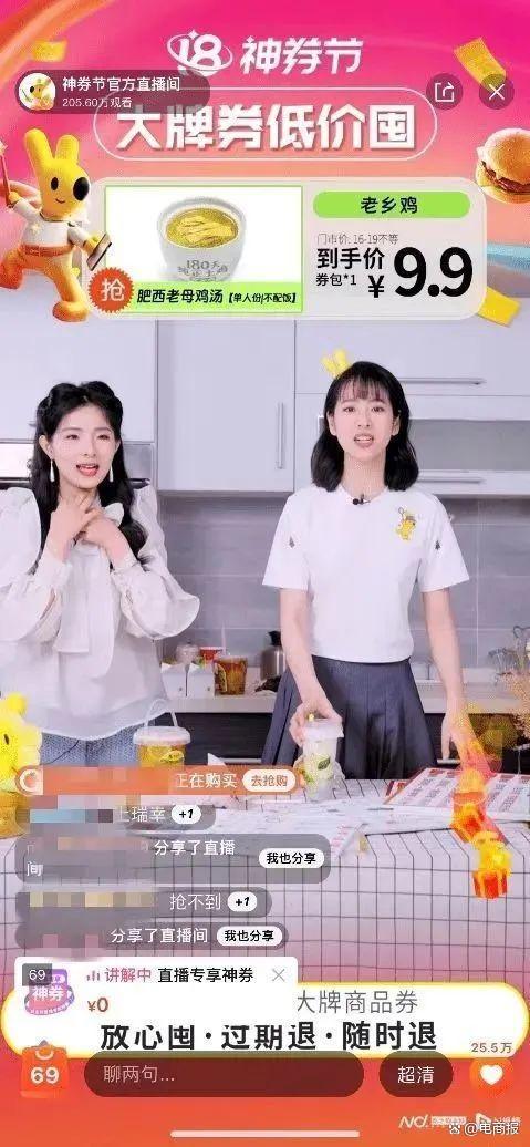 5月18日,神券節(jié)也開啟了第二場直播,這次直播在資源投入、商家參與度上,明顯比上一場有了更大提升,宋威龍和姜云升兩位明星,以及常青娘娘、老飯骨兩位人氣博主都空降直播間帶貨。