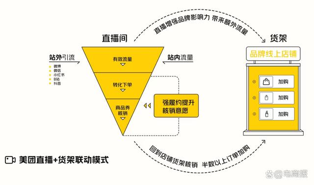 而美團獨有的直播間和貨架聯(lián)動的模式,也大大激發(fā)了品牌商家的參與意愿,從而參與到平臺的直播生態(tài)建設中來。