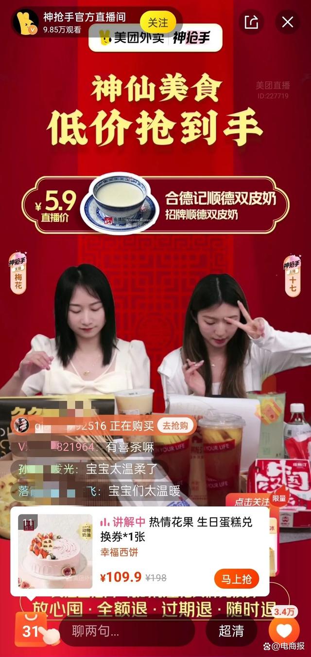 危機感之下,美團不斷優(yōu)化平臺功能,最終探索出了符合平臺基因的直播路徑,率先鋪開了“即看即點即達”的外賣直播模式。
